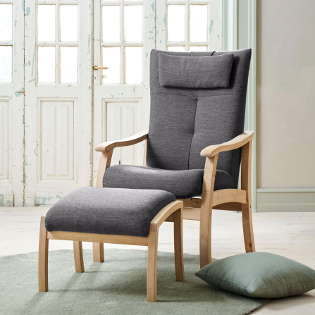 Rebild Otiumstol skiller sig ud med et moderne design, der ikke ligner en klassisk otiumstol. Alligevel byder den på samme høje komfort og funktionalitet, som man forventer af en otiumstol i topklasse. Produktion i Europa med fokus på kvalitet og bæredygtighed. Matchende fodskammel kan tilkøbes for ekstra komfort og stil.