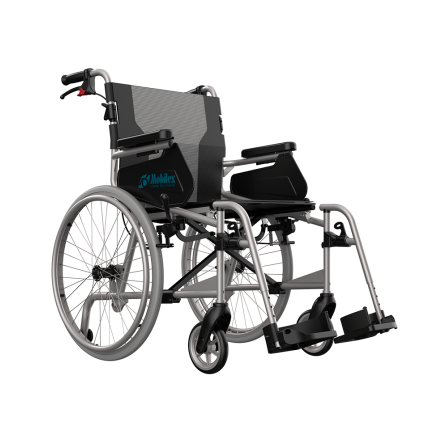 Mobilex Dolphin letvægtskørestol er en funktionel og komfortabel kørestol med en robust, sølvfarvet aluminiumsramme. Kørestolen er velegnet til daglig brug og kombinerer lav vægt med fleksible indstillingsmuligheder.