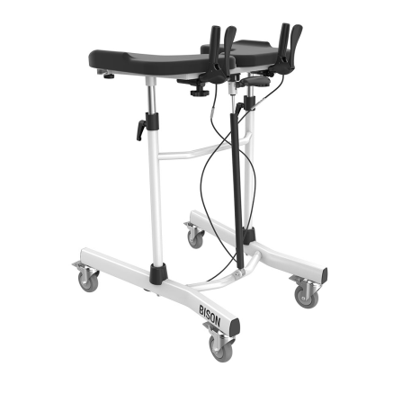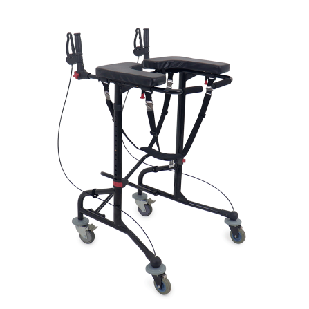 Rammen er fremstillet i let og robust pulverlakeret aluminium og er designet med fokus på individuel tilpasning. Armstøtterne kan justeres i både højde og bredde, støttehåndtagene er vinkeljusterbare og udstyret med håndbremser, og gangstativets bredde kan tilpasses forskellige brugere og træningssituationer. Alle indstillinger kan foretages hurtigt og nemt uden brug af værktøj.