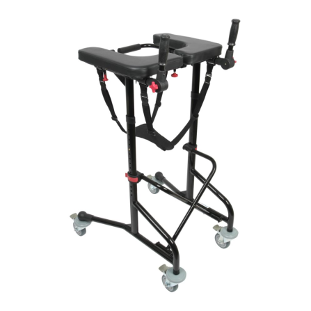 DynaWalk leveres med et bælte med integreret sæde, som giver ekstra støtte og sikkerhed under gangtræningen og mulighed for korte pauser efter behov. Den mobile konstruktion og de mange justeringsmuligheder gør DynaWalk gangstativ velegnet til brug på hospitaler, plejehjem, genoptræningscentre og i private hjem.