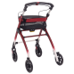 Rollatoren er udstyret med en taske og en aftagelig bakke. På 2 af de 4 store hjul er der påmonteret låsbare bremser, som aktiveres ved hjælp af en lang bremsebøjle. Rollatoren må kun bruges indendørs og er testet og godkendt til en brugervægt på maks. 100 kg.