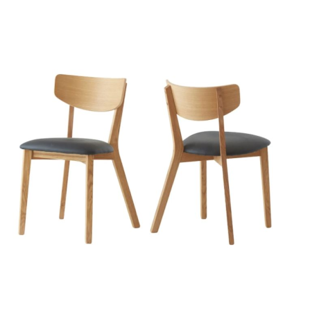 Stolen er fremstillet i massiv, olieret eg, der fremhæver træets naturlige struktur og varme glød. Sædet er betrukket med ægte sort læder, som giver både eksklusivt udtryk og suveræn siddekomfort, perfekt til lange middage med familie og venner.